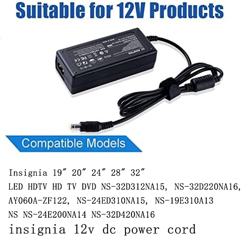 12V Ac Dc Adapter Energy Twine for Insignia 19″ 20″ 24″ 28″ 32″ LED HDTV HD TV NS-32D312NA15, NS-32D220NA16, AY060A-ZF122, NS-24ED310NA15, NS-19E310A13 NS NS-24E200NA14 NS-32D420NA16 Energy Provide Twine