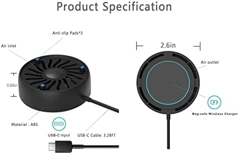 【WHAT YOU GET】1* Magnetic Wi-fi Charger and Cellphone Cooler with a 3.28FT USB-C cable.(Notes: No AC Adapter. For optimum charging,pls pair with a 20W PD USB-C Adapter), 1 Yr Guarantee.