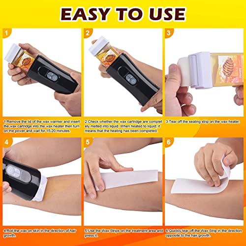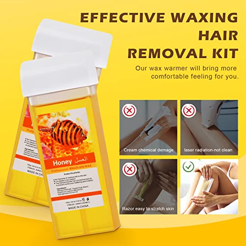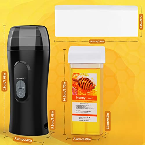 2022 Upgraded Roll On Wax Package, Honey Curler Waxing Package for Delicate Pores and skin, Depilatory Gentle Wax Heater with 2 Cartridge Refill and 100 pcs Wax Strips