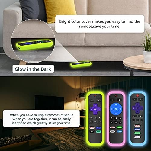 3 Pack Distant Cowl for Roku, The Distant Case Appropriate with Roku Voice Distant Official, Silicone Common Protecting Controller Sleeve for Roku TV Distant Glow in The Darkish Yellow Blue Pink