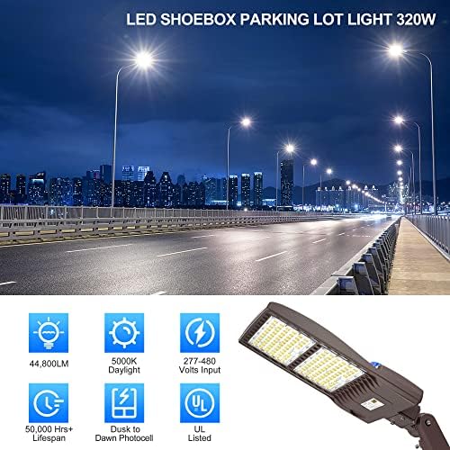 INCREDIBLE BRIGHT & ENERGY COST SAVING–Don’t stroll at midnight anymore! Our 320W led car parking zone mild output 44800 lumen-140lm/w, 5000K daylight white is pleasant to eyes, best to switch 1200W steel halide and excessive strain sodium lighting which might get monetary savings and energy consumption as much as 90%