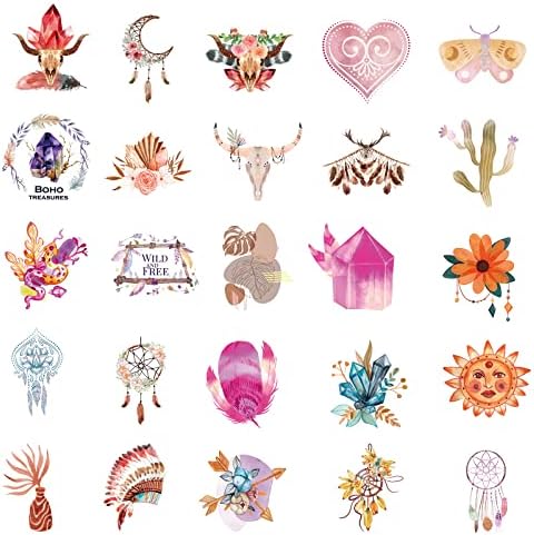 Acekar Boho Stickers,50 PCS Cute Aesthetic Boho Waterproof Stickers,Vinyl Stickers for Water Bottle,Laptop computer,Telephone,Skateboard Stickers for Teenagers Women Children (BXLY-50)
