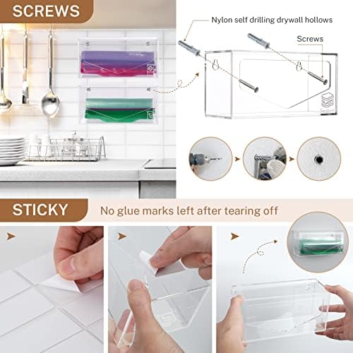 SPLIT DESIGN & EASY TO CLEAN – 4 totally different acrylic ziplock bag storage packing containers organizers, matching 9 screws, and eight robust self-adhesive sheets and eight anti-skid fixing level, you’ll be able to place these acrylic bag storage packing containers in response to totally different sizes on totally different locations. Our clear meals storage bag organizer holders come totally assembled with out glue, that merely wipe clear with damp material.