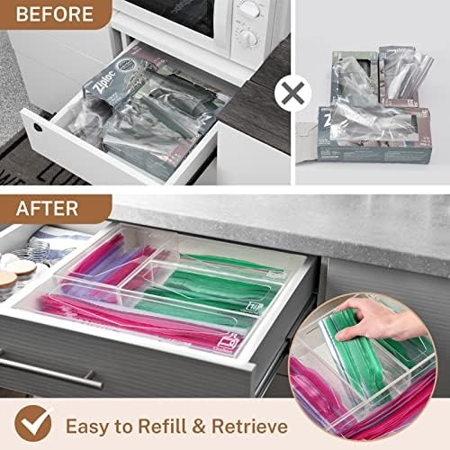 TRANSPARENT ACRYLIC ZIPLOCK BAG ORGANIZER – Our ziplock bag storage organizer is made from acrylic with finely polished. The floor of the ziplock bag storage field is clean, sturdy and sturdy. We will see the specification and amount of the bag by way of the clear bag organizer for drawer.