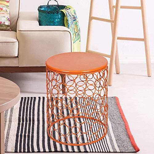 Adeco House Backyard Accents Circle Wired Spherical Iron Steel Nesting Stool Facet Finish Desk Plant Stand, Bubble Sample, Orange Pink, Set of Two
