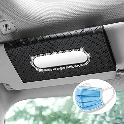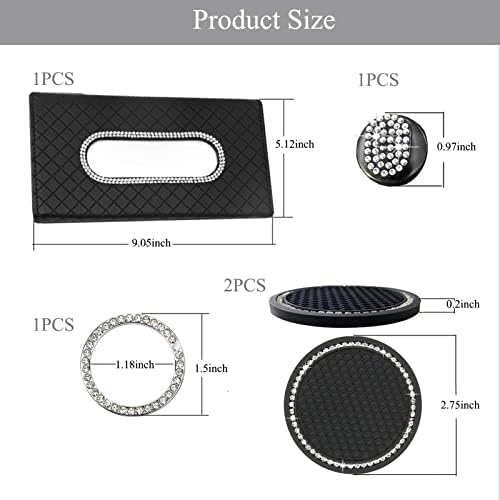 PACKAGE INCLUDED — 1 Leather-based and glowing rhinestone automobile visor tissue holder+2 Bling diamond automobile coasters +1 Bling diamond glitter masks hook+1 Bling begin button ring,luxurious and charming,good decor to your automobile Inside.