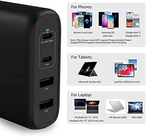 Contains: 4-port GaN-tech wall charger, person guide, and Amazon Fundamentals 1-year restricted guarantee. Word: This charger helps quick charging (9V) and never super-fast charging for units that require PPS (Programmable Energy Provide) e.g. Samsung Galaxy S20/S20+/S20 Extremely/S21/S21+/S21 Extremely/Word 10/Word 10+/Word 20/Word 20 Extremely, and so on.
