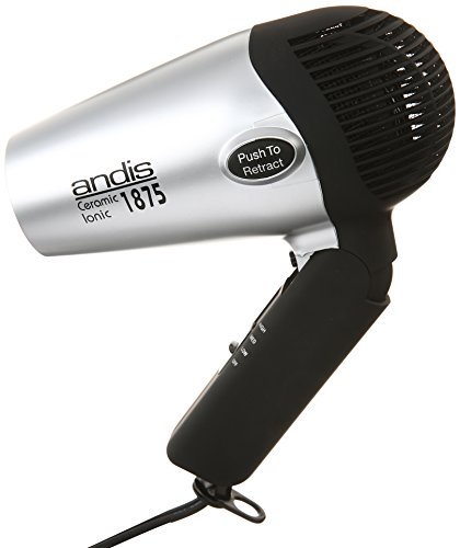 Andis 80020 1875-Watt Fold-N-Go Ionic Hair Dryer, Silver/Black
