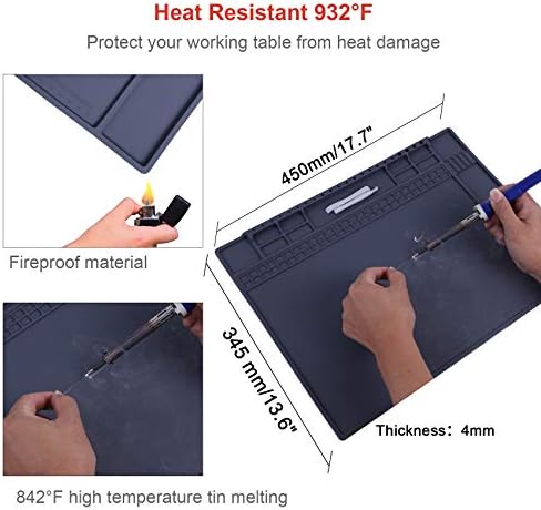 🥇【Warmth Resistant 932°F and Massive Measurement 】-The anti static mat is resistance to excessive temperature of 932°F shield your desk from burning and ruining. In contrast with rubber supplies mat, it has higher warmth resistance at excessive temperature. In the meantime, the Mat has huge dimension 17.7’’ x 13.6’’ present larger house to fulfill many initiatives like for repairing pc, cellphone,iPad, iMac, Digital camera, electronics circuit board. It’s nice for skilled restore retailer, DIY handyman and electronics workshop.