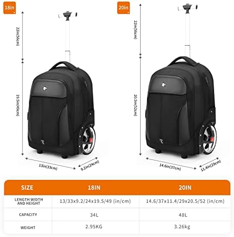 AOKING 18/20 Inch Giant Wheeled Water Resistant Journey College Enterprise Rolling Wheeled Backpack with Laptop computer Compartment Bag (20 inch, Black)