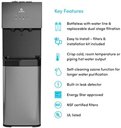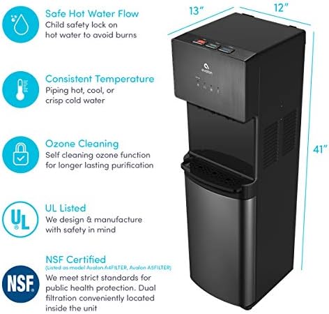 Avalon A5BLK Self Cleansing Bottleless Water Cooler Dispenser, UL/Vitality Star, NSF Licensed Filters, Black Stainless Metal, Full Measurement