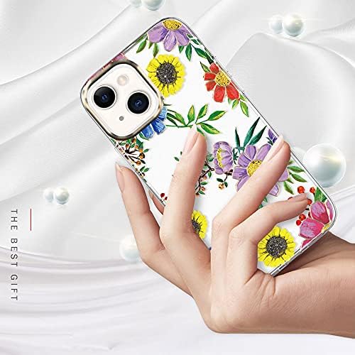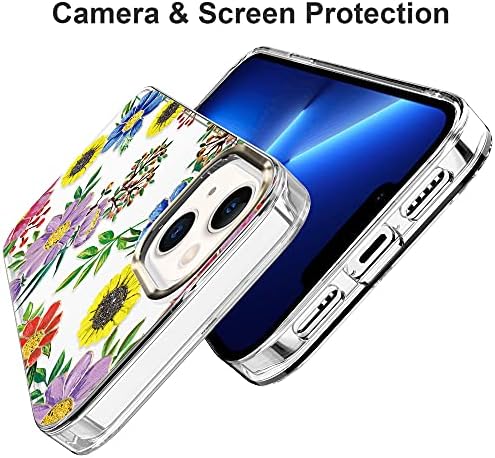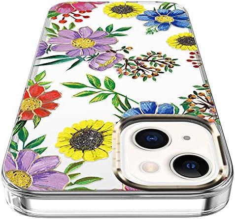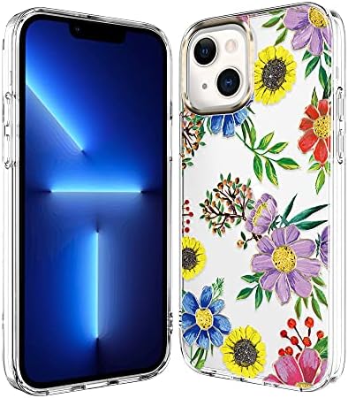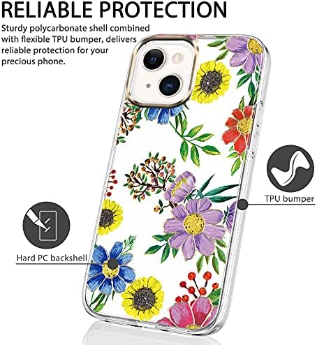 BAISRKE Suitable with iPhone 13 Case,Clear Case with Flowers,for Girly Girls,Shockproof Floral Sample Exhausting Again Cowl for iPhone 13 Case 6.1 inch 2021 – Blue Purple Blossoms