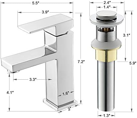DIMENSIONS: Rectangle White Toilet Sink : Size:21 inch , width:16 inch, top: 5.9inch. Faucet: General top: 7.2″; Spout Peak:4.1″; Spout Attain:3.3″. Pop-up Drain: Matches sink drain diameter of 1-5/8” to 1-3/4”. If the sink is damaged whenever you obtain, please contact us.