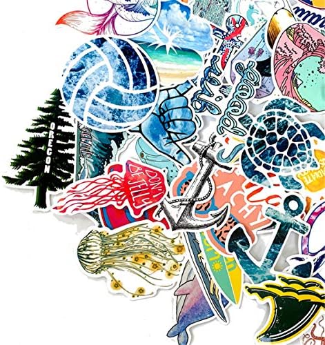 Seaside Stickers 50pcs Blue Browsing Waves Contemporary Vigorous Turtle Laptop computer and Water Bottle Vinyl Decals Cartoon Vitality Aesthetic Sticker Pack for Teenagers, Women, Vinyl Decals Waterproof (Seaside Browsing 50)