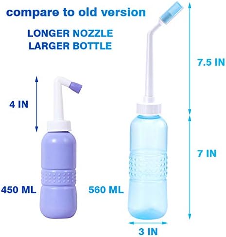 LARGER IS BETTER ! The upgraded bidet bottle has a 18 oz/ 560 ml capability . Giant sufficient to scrub totally at one time. Retractable nozzle makes it a transportable bidet.