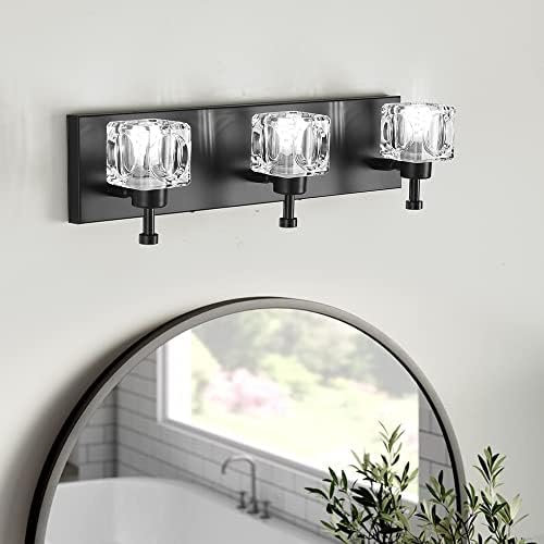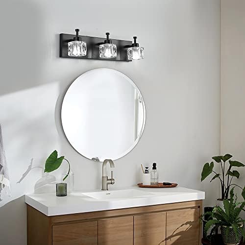 Black Lavatory Self-importance 3 Lights Fixtures Fashionable Above Mirror for Tub LED Crystal Glass Globe Wall Lighting(Exclude Bulb)
