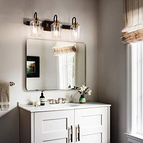 Black Self-importance Lighting BRIVOLART E26 3 Lights Self-importance Gentle Over Mirror Lengthy Rest room Lighting Fixtures(Exclude Bulb)