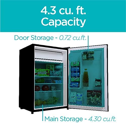 BLACK+DECKER BCRK43B Compact Fridge Power Star Single Door Mini Fridge with Freezer, 4.3 Cubic Ft., Black