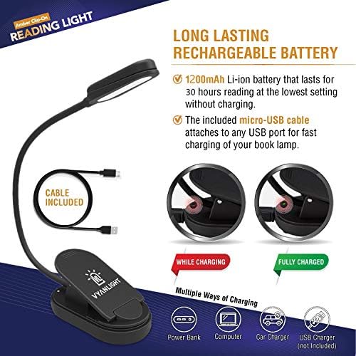 LONG-LASTING ILLUMINATION – You’ll be able to cost this guide mild for studying in mattress at night time together with your energy financial institution, your laptop computer, or within the automobile. This rechargeable guide mild costs quick and may final for 30 straight hours on the lowest setting.