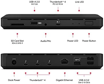 POWERFUL: 12 ports – 3 x Thunderbolt 4, 1 x USB-A (2.0 5V/1.5A), 3 x USB-A (3.3 Gen 2 10 Gb/s), 1 x Thunderbolt 4 PD 3.0 90W, 1 x SD Card (SD4.0UHS-II), 1 x Ethernet (Gigabit), 1 x Audio/Mic, 1 x Dock Energy.