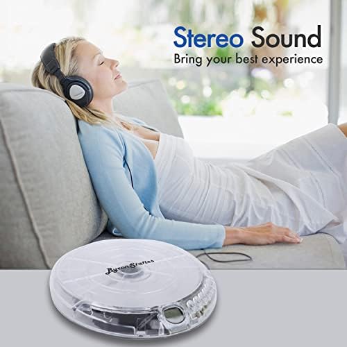 ByronStatics Moveable Disc CD Participant, Private Walkman Music CD Gamers Anti-Skip Shockproof Safety, Moveable and Light-weight, Headphones Jack, Powered DC or 2XAA Battery – Translucent