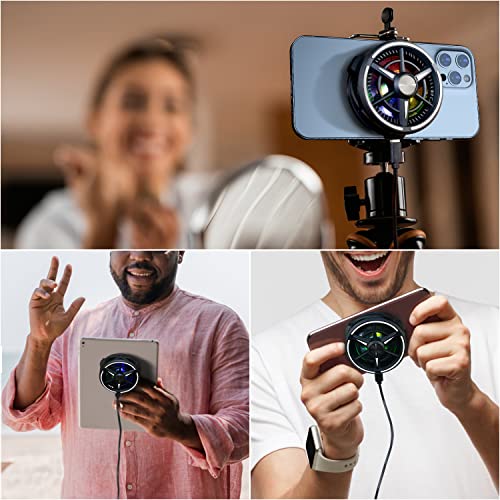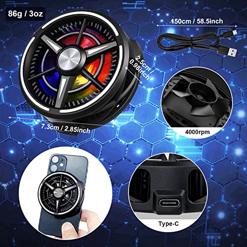 Cell Telephone Fan Cooler, Cell Telephone Radiator with Semi-Conduct Cooling Chip, MagSafe Suitable, 7 Blade Fan, RGB LED Chroma, Sort-C USB Cable for iPhone 12/13 Collection by Greenmaker Black
