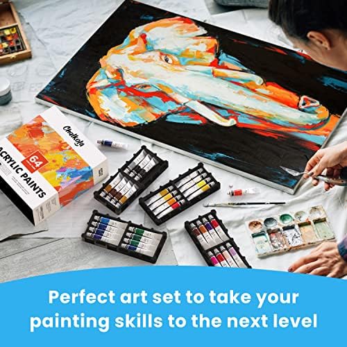 Chalkola Acrylic Paint Set for Adults, Children & Artists – 64 Acrylic Tubes (22ml), 10 Artwork Brushes, Knife, Sponge & Palette – Acrylic Paint Provides Package for Canvas Portray, Wooden Crafts, Ceramic Paint