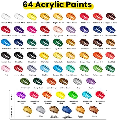 Thrilling Choice of Artist High quality Colours: Assortment of Neon, Matte, Metallic Acrylic Paint, Traditional colours & 2 tubes every of titanium white & mars black