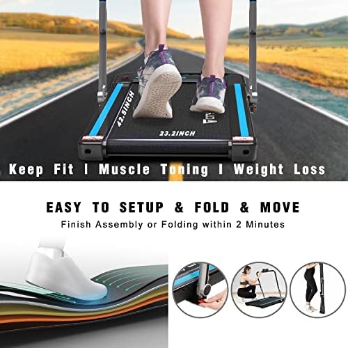 【Foldable treadmill with transport wheels】 Are you bothered by its dimension? Don’t worry! Because of its folding armrest and wheels, you may transfer it round and preserve it underneath a settee or mattress very simply.