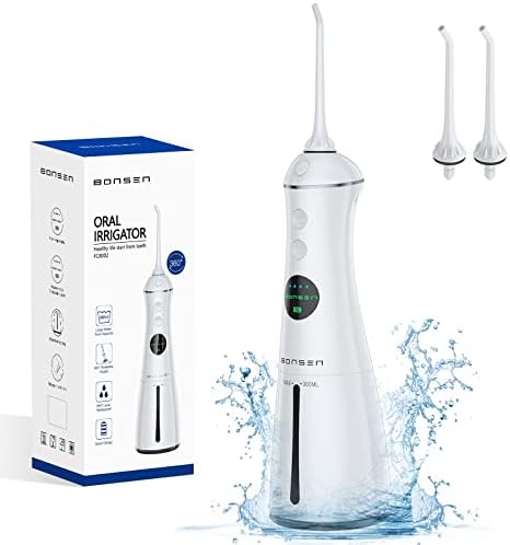 Cordless Dental Water Flosser for Enamel, BONSEN 6 Stress Modes Oral Irrigator, Moveable and USB Rechargeable IPX7 Waterproof 300ML Tank Water floss, Best for Dwelling Journey Braces Bridges Care – White