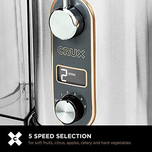 Crux Simple to Clear 5-Velocity Digital Juicer with 5 Customized Settings & Juice Jar with Frother Separator, clear