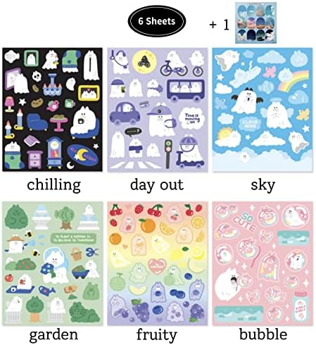 Cute Important Kawaii Korean Detachable Aesthetic Stationery Sticker Pack – 6 Sheets (Complete 150+) & 1 dalgaru cloud sticker sheet for polco, toploader, photocards, planners, diaries, journals, scrapbooks / present for for ladies, ladies, faculty, college