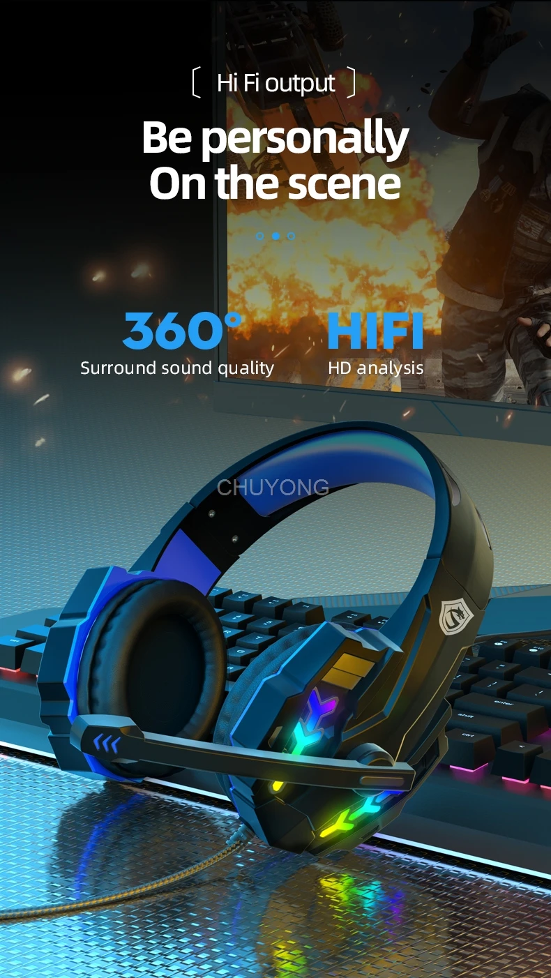 Specification: C&Y Gaming Headsets Gamer Headphones Encompass Sound Stereo Wired Earphones USB Microphone Vibrant Mild PC Laptop computer Recreation Headset