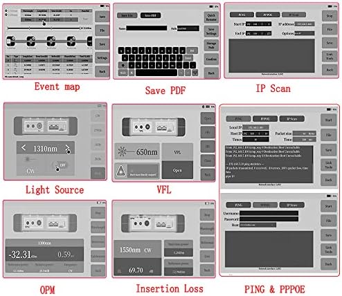 7-inch colour LCD display screen with a contact display screen, With a view to keep good viewing impact.Help transmitting fiber, receiving fiber setting, Go/Fail threshold dedication, check report era and may print PDF check stories