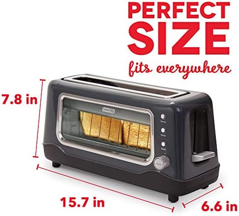 DASH Clear View Toaster: Additional Vast Slot Toaster with See By way of Window – Defrost, Reheat + Auto Shut Off Function for Bagels, Specialty Breads & different Baked Items – Grey