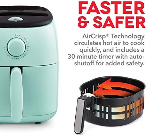 DASH Tasti-Crisp™ Electrical Air Fryer Oven Cooker with Temperature Management, Non-Stick Fry Basket, Recipe Information + Auto Shut Off Characteristic, 1000-Watt, 2.6Qt, Aqua