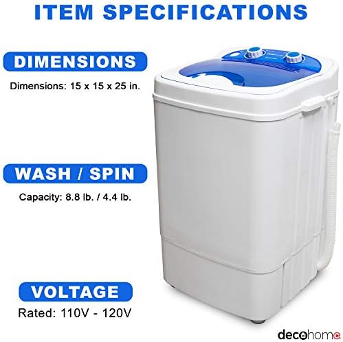 Deco Dwelling Transportable Washing Machine for Flats, Dorms, and Tiny Properties with 8.8 lb Capability, 250W Energy, Wash and Low Agitation Spin Cycle, Contains Drainage Hose, ETL Licensed