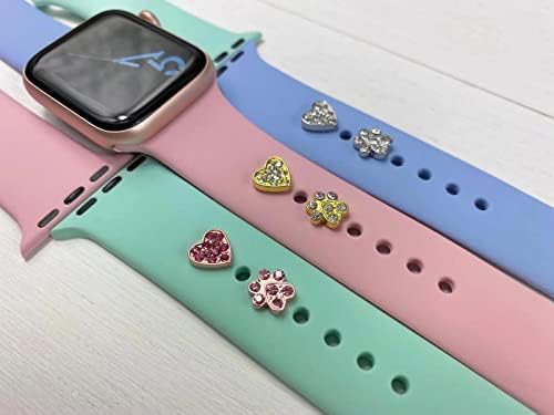 Ornamental attraction ring suitable with Apple watch band 7/6/5/4/3/2/1 Silicone bands,Cute coronary heart canine paw diamond rhinestone design attraction for iwatch band(NO BAND)sensible watch Equipment