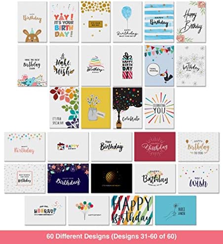 ✨60 UNIQUE HAPPY BIRTHDAY CARDS: Beloved our 50 birthday playing cards? Then be blown away by the additional worth you get with 10 additional playing cards. Sure – we have upgraded our 50 distinctive playing cards. Every of our 60 playing cards is expertly crafted with its personal contemporary, fashionable, signature design – there are not any duplicates – solely extra worth!