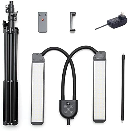 Twin Arm LED Transportable Lighting Lamp, Adjustable Vibrant Lights, USB Charging Port and Coloration Temperature Adjustment 3200-6000K,Lamp with Cell Cellphone Holder,Designed for Lash, Tattoo, Nail