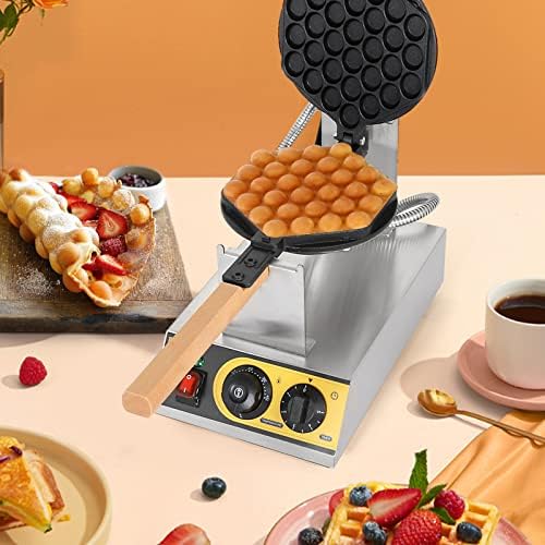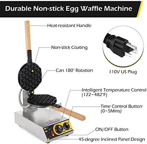 [New Upgraded Bubble Waffle Maker]- Business bubble waffle maker adopted 45-degree inclined panel design, simpler to function, which made from high-quality stainless-steel, nonstick Teflon pan, simple to scrub, sturdy and long-term use. With a heat-resistant picket deal with, it’s simple to function.