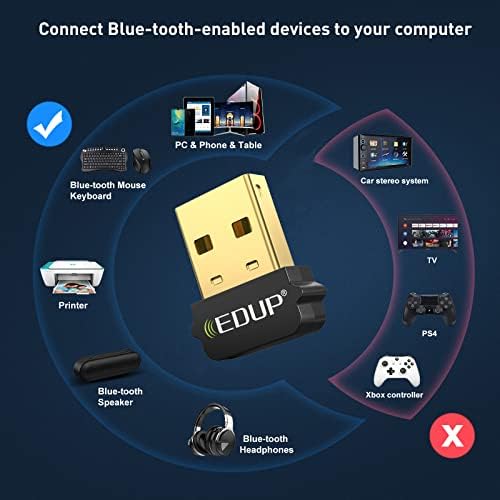 【Bluetooth Adapter MUST Set up Driver】: Assist Home windows 10 / 8 / 8.1 / 7, not mac OS, Linux. Please set up driver from coming CD or EDUP web site( Mannequin: EP-B3519S) earlier than use.