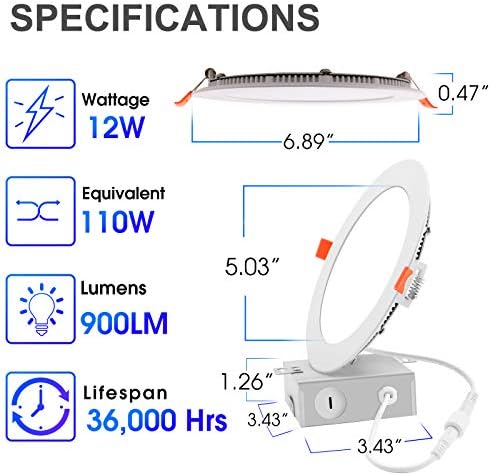 【Options & Safety】This 6-inch canless LED recessed gentle is NON-FLICKER, Easily dimming 10%-100%, appropriate with most dimmers in the marketplace. 3000K heat white, 120W equal with simply 12W to save lots of as much as 86% in your power invoice. No lead or mercury, long-lasting 36,000 hours, as much as 32 years.