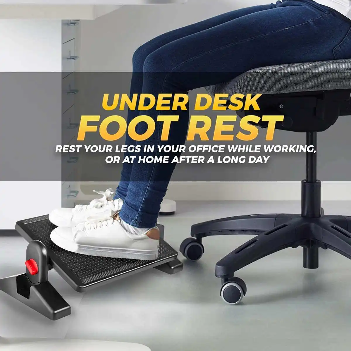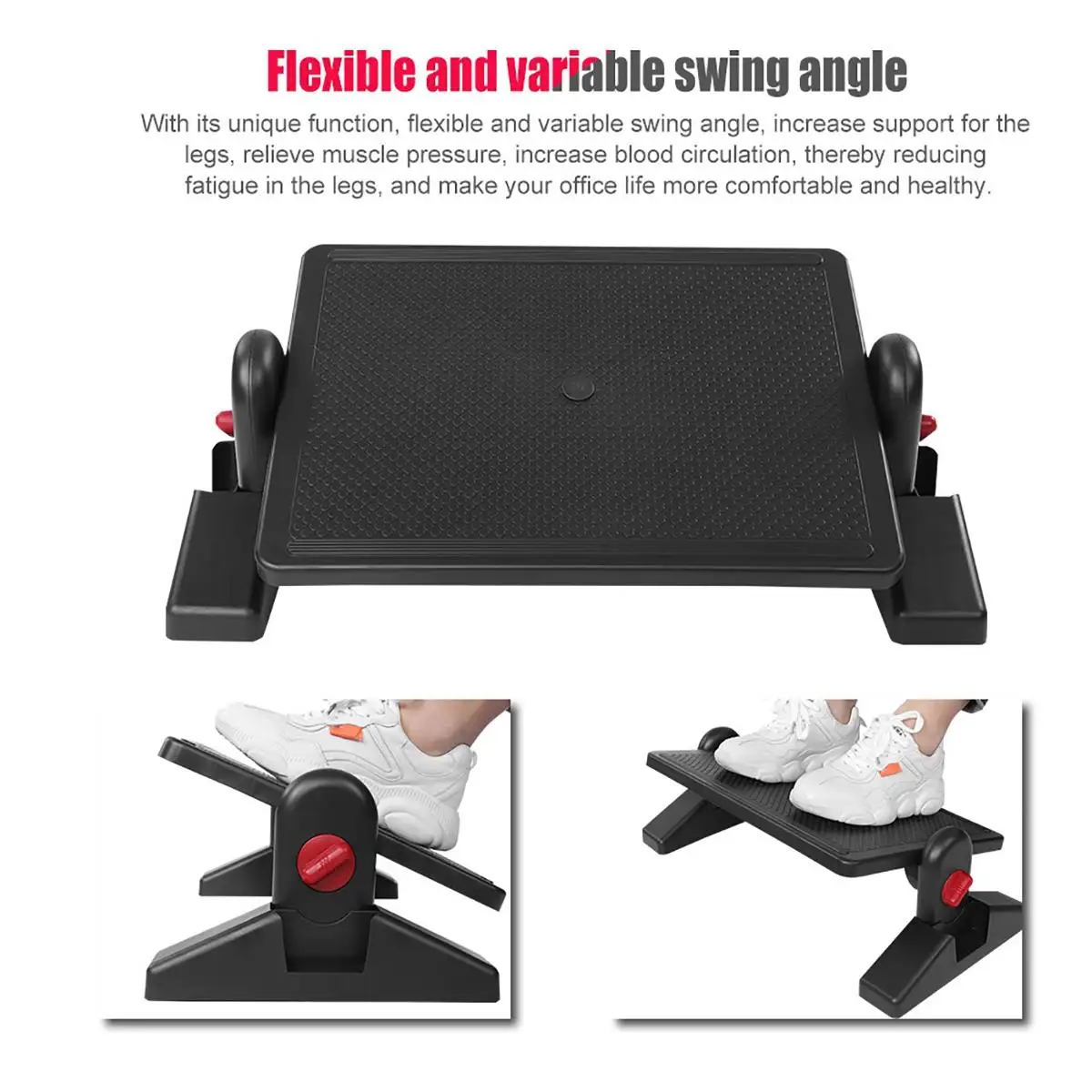 Specification: Ergonomic Footrest Adjustable Angle and Top Workplace Foot Relaxation Stool for Underneath Desk Assist 2-Stage Top Adjustment Black
