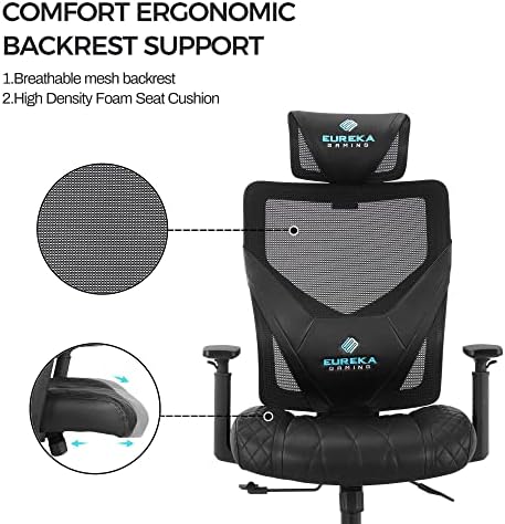 EUREKA ERGONOMIC Gaming Chair,Video Recreation Chairs PC Mesh Gaming Pc Workplace Chair with Adjustable Lumbar Help Headrest Armrest Gamer Desk Chair for Adults Teenagers, Black