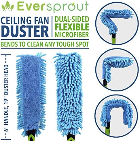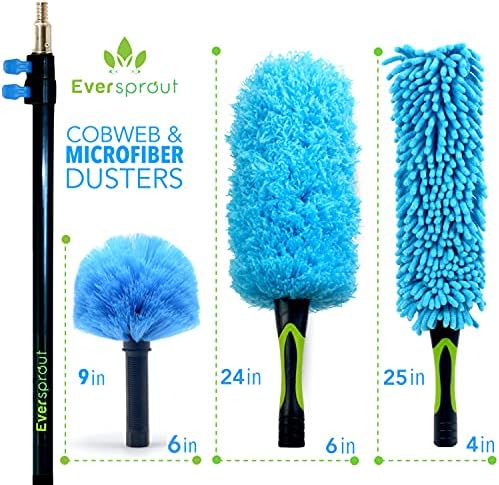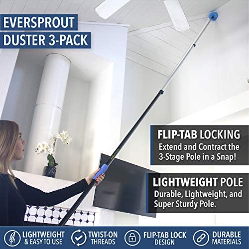 EVERSPROUT 6.5-to-20 Foot Duster 3-Pack with Extension-Pole (25+ Foot Attain) | Hand-packaged Cobweb Duster, Microfiber Feather Duster, Versatile Microfiber Ceiling Fan Duster | Aluminum Telescopic Pole