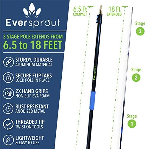 THE ULTIMATE EXTENSION POLE ON THE MARKET TODAY – Light-weight Aluminum pole weighs solely 2.1 kilos and could be very sturdy. Non-Slip Foam Hand Grips for consolation and dependable grip in moist circumstances. Frustration Free Flip-Tab Locking Mechanism means NO SECTIONS GETTING STUCK like conventional twist-lock poles, AND permits any customized size between 6.5 and 18 ft. 3/4” Acme Thread Pole Tip is manufactured from metallic alloy for sturdiness – suitable with any Eversprout Attachment with over 10x Potential Makes use of.