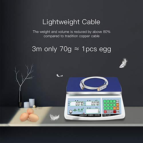 Fiber optic cable is 80% lighter than copper cable. Our 9.9ft crystal hdmi cable is barely 0.16lb, wihch is equal to the burden of an egg. And the bending radius greater than 20mm for simple set up in tight areas.