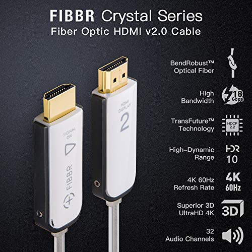 FIBBR Crystal HDMI 2.0 Cable 4K Extremely HD – Fiber Optic HDMI Cable Help 18Gbps Excessive Pace HDR10 Hdcp 2.2 for HDTV, Xbox, Blue-Ray Participant, PS4 PS4Pro, PC, Apple TV, 6.6ft