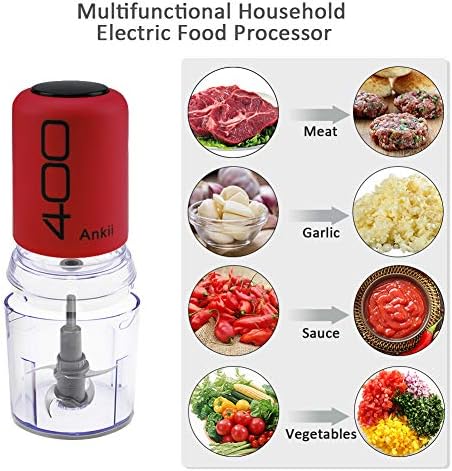 Meals Processor Blender Electrical Vegetable Chopper Multifunctional Meat Chopper Veggie and Fruit Mincer Mixer with 4 Stainless Metal Blades, 400-Watt, 2 Cup Capability